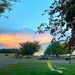 Un angolo cottura include un frigo e un tostapane per un soggiorno confortevole.